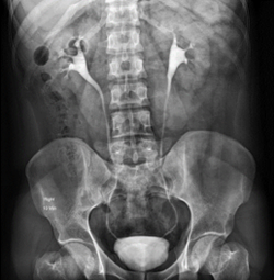 An intravenous pyelogram is used to examine your kidneys, ureters and bladder. In the past, intravenous pyelogram was the most frequently used imaging test for evaluating possible urinary tract disorders. Since the development of kidney (renal) ultrasound and CT scans — which take less time and don't require X-ray dye — use of intravenous pyelograms has become less common.